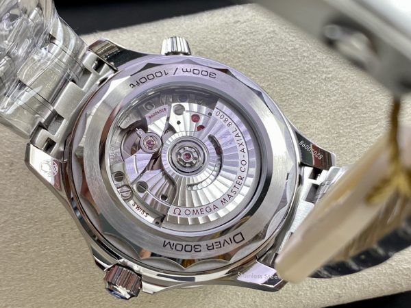 VS Factory, Omega Seamaster 300 Wave Pattern, a cutting-edge fashion watch series, adhering to the glorious marine legend, VS combines Omega’s technological innovation and design concepts to present new masterpieces. Ω OMEGA SEAMASTER Planet Ocean 300-meter Coaxial Master Chronometer 42mm diving watch, model number: 210.30.42.20.03.001, brushed stainless steel case with polished finish, bezel made of blue ceramic, decorated with white enamel Diving scale, word ring scale will not wear and fade, ratchet countdown bezel rotates counterclockwise in one direction , domed sapphire mirror, polished blue ceramic dial, laser-engraved ripple pattern, calendar window at 6 o’clock, hollow hands and embossed hour markers rhodium-plated, and covered with Super-LumiNova luminous coating, blue and green two-color Luminous, green luminous minute hand display and green luminous dot on the bezel are used for diving oxygen countdown, multiple waterproof screw-in crown,It can be worn for actual diving in the sea. It has a conical helium escape valve and a corrugated edge design. The beautiful movement of the movement can be clearly seen on the transparent case back. It is a replica of the 8800 movement. There are three straps to choose from, stainless steel strap and canvas strap. Strap and rubber strap, brushed steel strap, the correct way to remove the strap The product has the same screws on both sides and an independent fixed rod design strap in the middle. It has a foldable double snap buckle and can be fine-tuned and extended by pressing. It can be opened and extended to be worn on the surface of the diving suit when diving. An optional red, white and blue nylon strap is available. Easily replaced to switch between different wearing styles, the watch diameter is 42 mm.